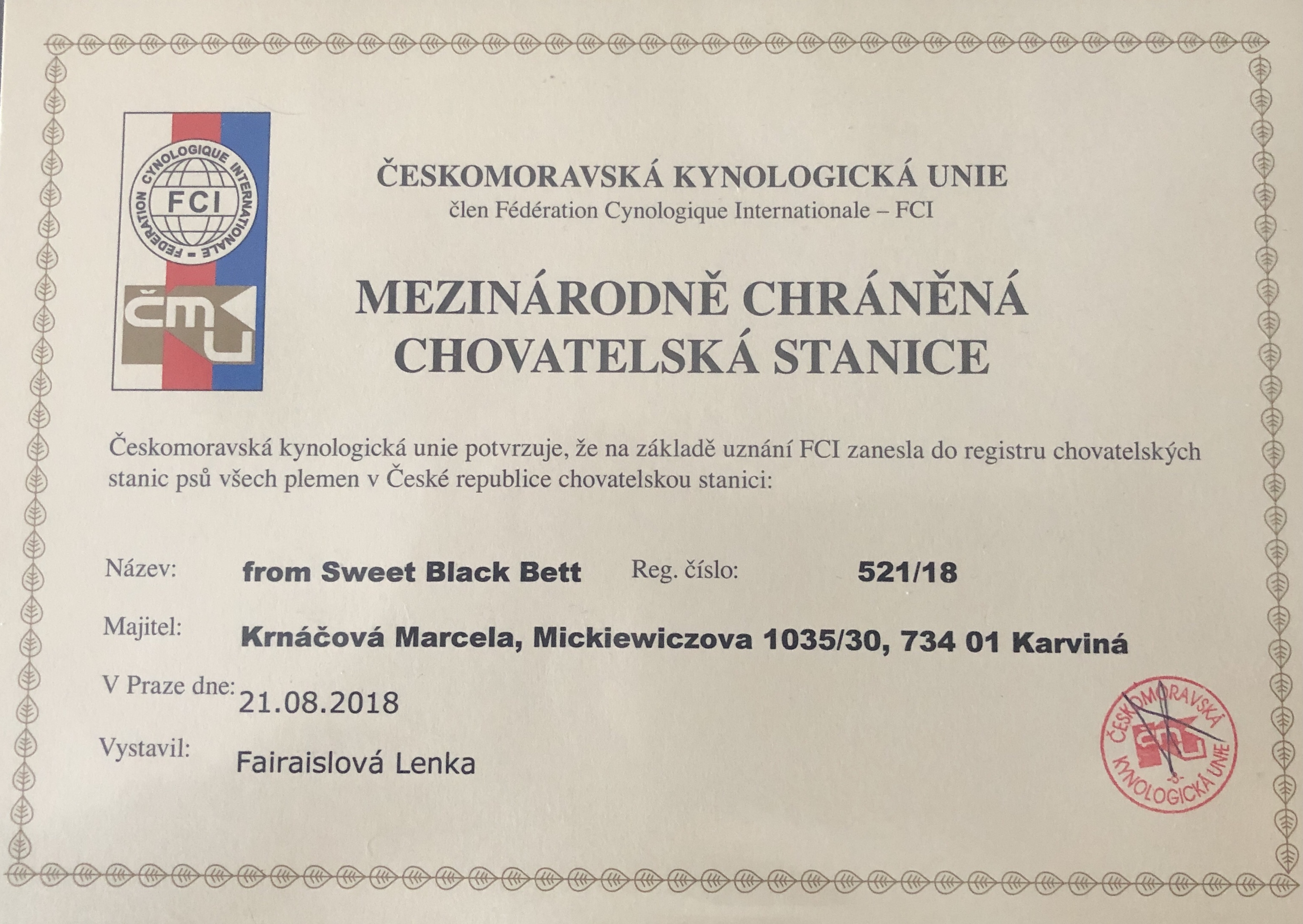 Název "from Sweet Black Bett" vznikl podle naší milované fenečky Black Bett. Původně jsme chtěli skvělého hlídače k domu, avšak brzy jsme propadli kráse tohoto skvělého plemene. Chov psů je a bude vždy pro nás koníčkem, kterému jsme podřídili celý svůj volný čas.